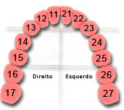 | Assinale no odontograma abaixo os dentes a serem radiografados |